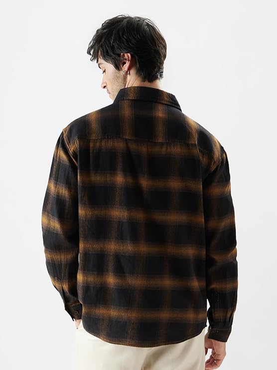 The Souled Store Plaid: Brown Mustard and Black Men and Boys Relaxed fit Striped Full Sleeve Cotton Multicolored Men Relaxed Shirts Shirt For Men Casual Half Sleeves Regular Fit Printed Stylish Latest
